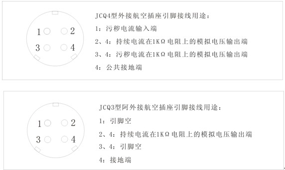 各型號監(jiān)測器均可根據(jù)需要配置外接插座,用于配合遠程監(jiān)測系統(tǒng)。其可輸出持續(xù)電流在1KΩ電阻上的電壓模擬量,污穢電流在1KΩ電阻上的電壓模擬量。
